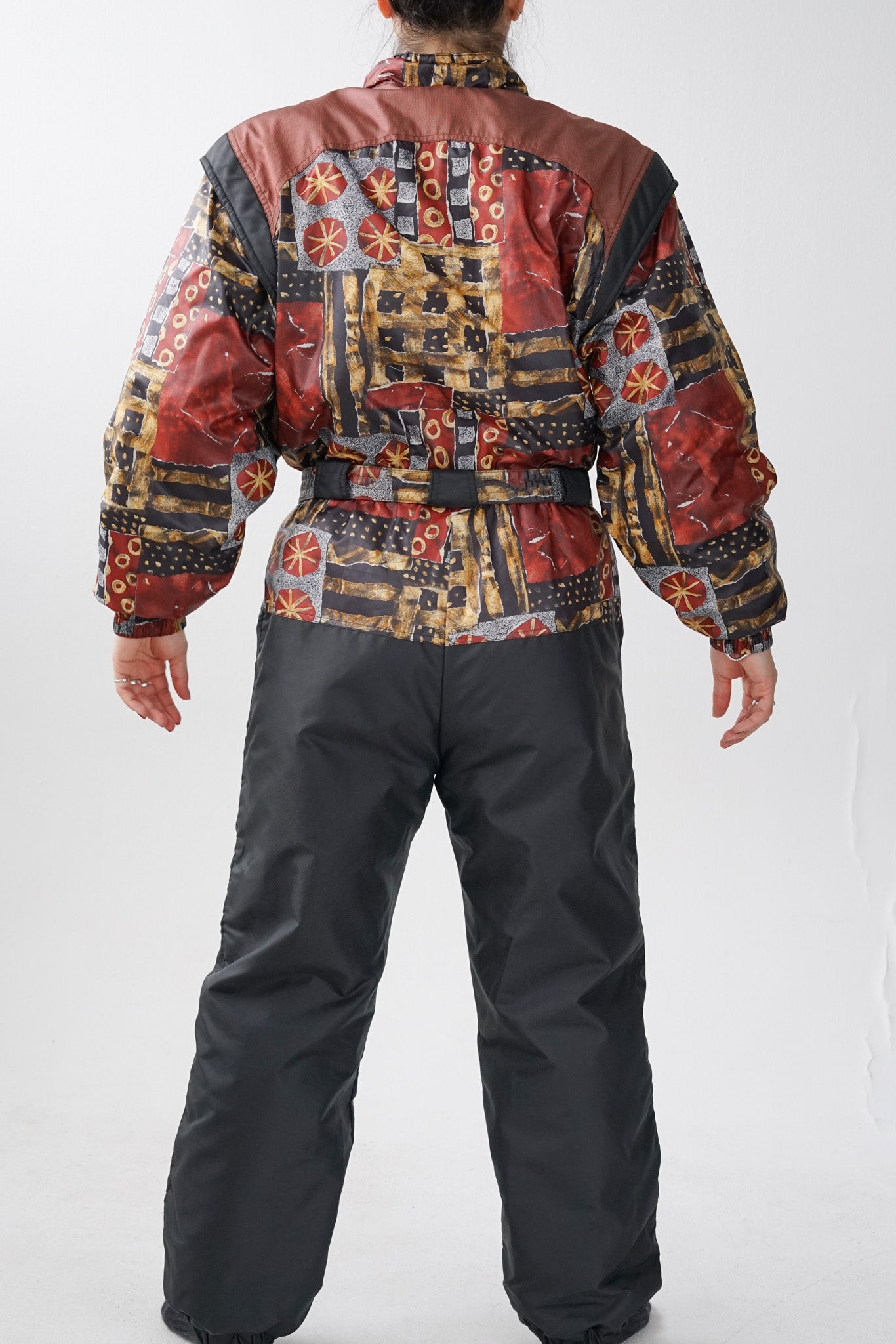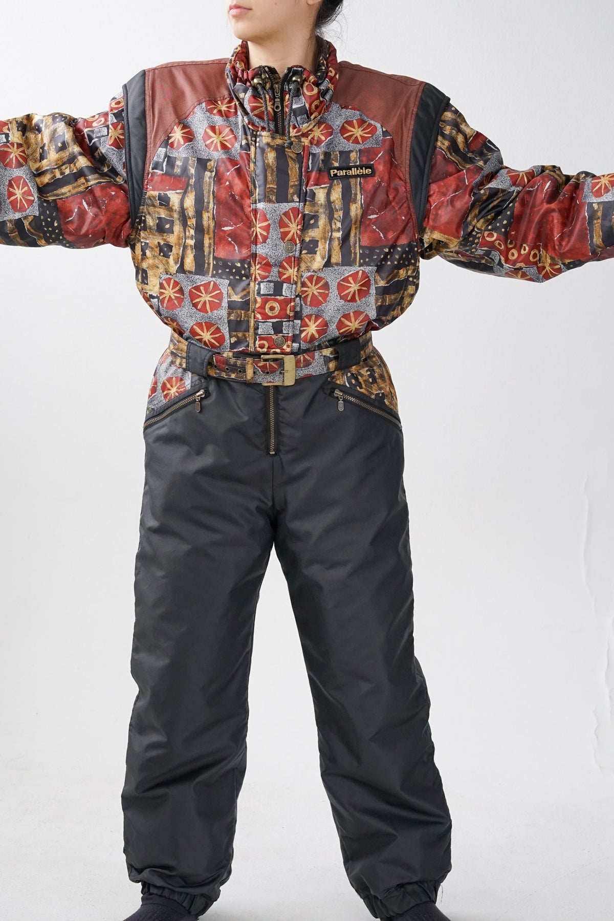 Grandeur mannequin 5’7’’, 28 de pantalon & porte des ski suits taille 10 femme (S). | Model height 5’7’’, pants size 28 & wears ski suits size 10 women (S).
